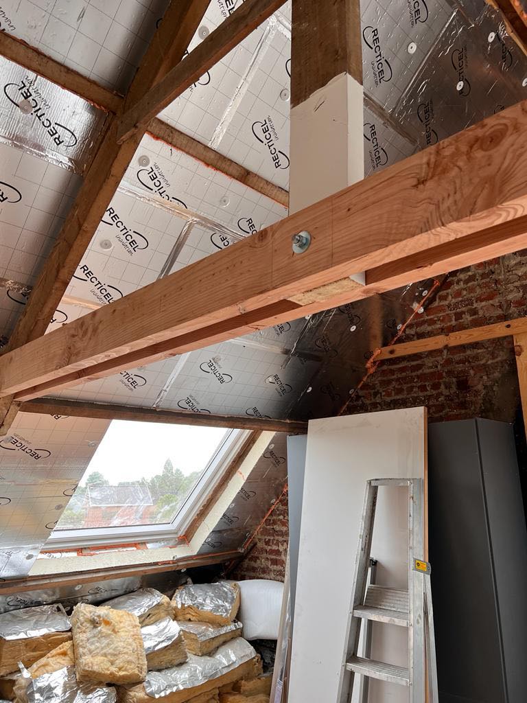 Bij deze methode, ook wel sarking genoemd, plaatsen we isolatieplaten bovenop de dakconstructie. Dit zorgt voor een volledig doorlopende isolatieschil zonder koudebruggen.